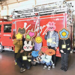 最後に、消防車の前で記念写真を撮りました!