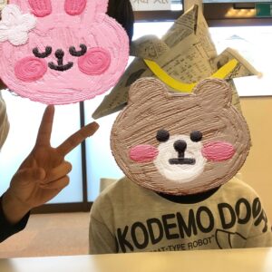GW中は、お出かけをしたご家族がいるなか、ぶるーむでは兜制作を行いました。