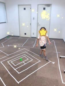 テープからはみ出ないように、今回のねらいであるバランス感覚に気を付けていました😊