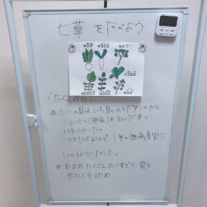 すずな、すずしろ、せり、ほとけのざ、はこべら、ごきょう、なずな の七つの野菜を覚えました。