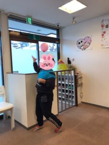 ひとりでのトスが難しい子は、スタッフとラリーしてる間に着脱を目指し、みごとクリア♡オメデト♡