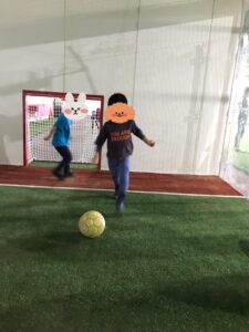 学年の低い子ども達は少人数制によるサッカーをおこないました。