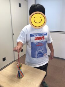 次回おこなう時は、本数を増やしたり、サイコロを使って取る本数を決めたり、色々工夫して、本物のスティッキーゲームに近づけられるようにできたらと思います🎵