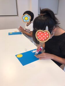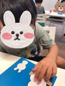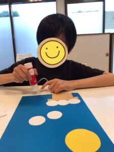 バランスよく貼り付けるのに苦労する子どもがいました。