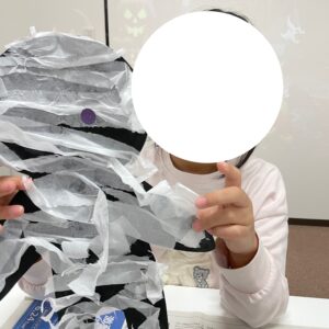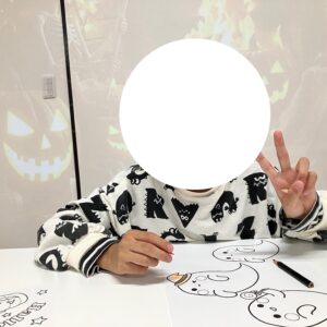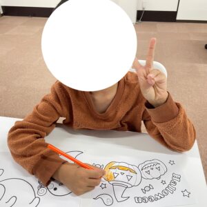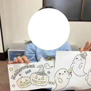 別の日には、塗り絵も頑張りました。ハロウィン全開の教室です(^^)/