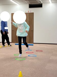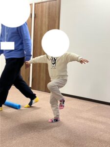 以外に苦手な子が多いと感じたのは、片足立ちでした。まず自分の力の入るのは右足なのか左足なのかわからない子が多かったです。