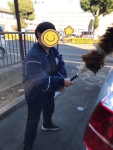 車のお掃除では、砂埃などを綺麗に拭き取りました。