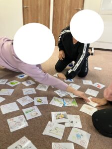 を紹介していきたいと思います。1月の活動、お正月らしい活動をとかるたと福笑いを行いました。