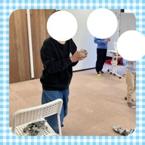 しわっしわの新聞紙ボールは、力任せに投げても飛距離がでず。相手に当てるのも一苦労。