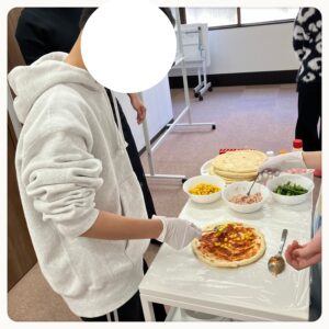 調理活動で「🍕ピザ」を作りました。