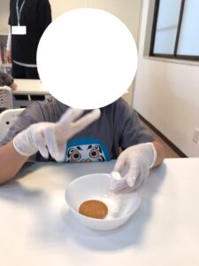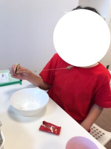 食べ始めると、マシュマロがいい感じに溶けていて、「見てみてー!」と伸ばしているところをお友達や職員に見せて楽しんで食べていました🍪