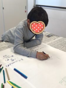 というわけで、今回は大きな模造紙に冬休みの思い出をたくさん書いてもらいました✏️